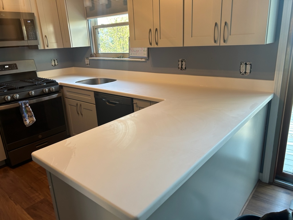 “Enhance Your Kitchen with Solid Surface Countertops, Where Style Meets Durability & Easy Maintenance.”